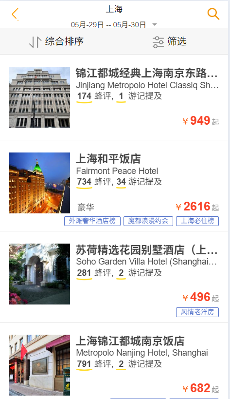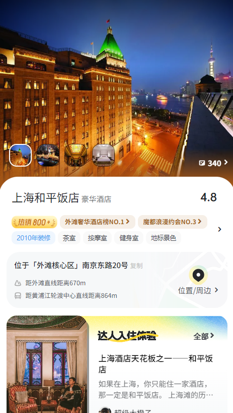 目的地搜索、我的位置获取、根据条件查找酒店列表、酒店详情页面、预定酒店